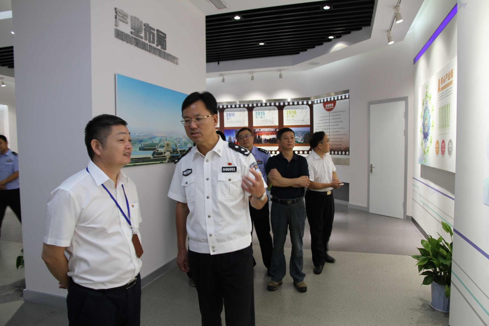 9月11日上午,紹興市副市長、公安局局長徐華水前來閏土生態工業園視察全省傳統制造業改造提升工作推進會準備工作情況,股份公司總經理徐萬福、副總經理阮光棟、副總經理徐軍等領導陪同調研。徐華水局長參觀了閏土科技展覽館,并對推進會當天的安全工作作出重要指示。