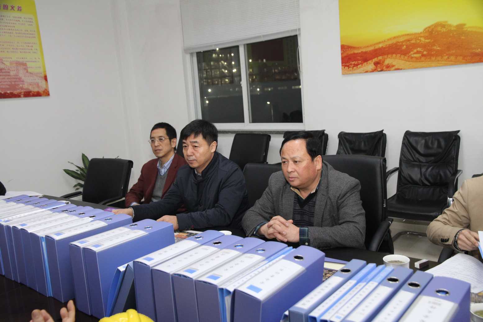 檢查組領(lǐng)導(dǎo)在認(rèn)真聽取企業(yè)關(guān)于安全生產(chǎn)工作的匯報(bào)。圖中,中間為國家安監(jiān)總局職業(yè)健康司副司長王建冬、左一為省安監(jiān)局總工程師李公杭、右一為紹興市政府副秘書長章國金。