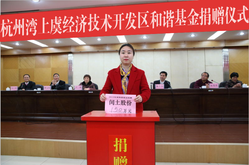 董事長阮靜波出席杭州灣上虞經濟技術開發區和諧基金捐贈儀式